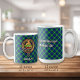 Clan Douglas crest badge surrounded by a strap and buckle over tartan background. Custom text on both sides.