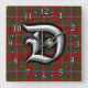 Clan Drummond Letter D Monogram Tartan Square Wall Clock