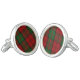 Handsome cufflinks done in the traditional colorful red and green Scottish clan Dunbar tartan plaid pattern. Customize to add a single letter monogram if desired. Matching lapel / tie pin and neck tie available. Great gift idea.
