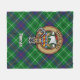 Clan Duncan crest badge surrounded by a strap and buckle over tartan background. Custom text.