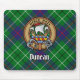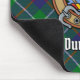 Clan Duncan crest badge surrounded by a strap and buckle over tartan background. Custom text.