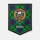 Clan Duncan crest badge surrounded by a strap and buckle over tartan background. Custom text.