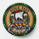 Clan Duncan crest badge surrounded by a strap and buckle over tartan background. Custom text.