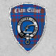 Stylish shield shaped patch features Scottish Clan Elliot crest badge and customizable text on tartan background