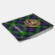 Clan Farquharson crest badge surrounded by a strap and buckle over tartan background. Custom text.