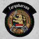 Clan Farquharson crest badge surrounded by a strap and buckle over tartan background. Custom text.