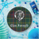 Scottish Clan Forsyth crest badge on clan tartan background. "Clan Forsyth" text in Old English font can be customized with names or other personalized messages.
