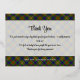 Clan Fraser crest badge surrounded by a strap and buckle over hunting tartan background. Foil printed thank you card. Custom text.
