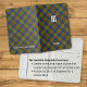 Clan Fraser crest badge surrounded by a strap and buckle over hunting tartan background. Custom text. Personalize template for more. Delete crest and make visible the custom monogram for a formal look. Rotate tartan 135 degrees for a casual look.