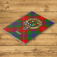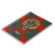Clan Fraser crest badge surrounded by a strap and buckle over tartan background. Custom text.