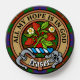 Clan Fraser crest badge surrounded by a strap and buckle over tartan background. Custom text.