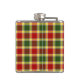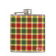 Monogrammed flask with the tartan for Clan Gibbs and Gibson. Bright red, yellow, and green Scottish plaid pattern from 1994, with blue and white accents.