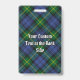 Clan Gordon crest badge surrounded by a strap and buckle over tartan background. Custom text.