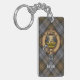 Clan Gordon crest badge surrounded by a strap and buckle over weathered tartan background. Custom text on both sides.