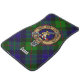 Clan Gunn crest badge surrounded by a strap and buckle over tartan background. Custom text.