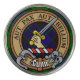 Clan Gunn crest badge surrounded by a strap and buckle over tartan background. Custom text.