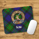 Clan Gunn crest badge surrounded by a strap and buckle over tartan background. Custom text.