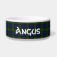 Traditional blue, green, and red clan Gunn tartan plaid around this white ceramic dog bowl. Custom white text is ready to personalize with your pet's name. Makes a great gift idea to a new dog owner.