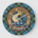 Clan Guthrie crest badge surrounded by a strap and buckle over tartan background. Custom text.