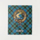 Clan Guthrie crest badge surrounded by a strap and buckle over tartan background. Custom text.