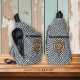 Clan Haig crest badge surrounded by a strap and buckle over check tartan background. Custom text.