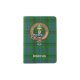 Clan Henderson crest badge surrounded by a strap and buckle over tartan background. Custom text. Personalize template for more. Delete crest and make visible the custom monogram for a formal look. Rotate tartan 135 degrees for a casual look.