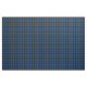 Fabric with the Clan Hume tartan, dated to 1842. Traditional Scottish plaid pattern in bright royal blue and black, with green and orange highlights.