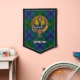 Clan Johnston crest badge surrounded by a strap and buckle over tartan background. Custom text.