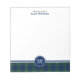 Personalized note pad with a plaid border and monogram. Features the Johnston family clan tartan pattern. Traditional vintage Scottish plaid from 1842 in blue and green, with black and yellow accents.
