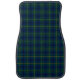 Set of four car floor mats with a blue, green, and yellow Scottish tartan. Traditional Clan Johnstone family plaid pattern. Includes two front floor mats and two rear floor mats.