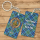 Clan Keith crest badge surrounded by a strap and buckle over tartan background. Custom text on both sides.