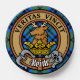Clan Keith crest badge surrounded by a strap and buckle over tartan background. Custom text.
