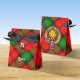 Clan Kerr crest badge surrounded by a strap and buckle over tartan. Custom monogram. Custom text.
