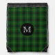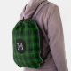 Classic plaid drawstring backpack done in the traditional Scottish green, black, yellow clan MacArthur tartan plaid pattern. Personalize the white one letter monogram, for yourself or as a great gift idea.