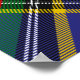 Clan MacBeth crest badge surrounded by a strap and buckle over tartan background. Custom text.