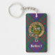 Clan MacDonald crest badge surrounded by a strap and buckle over tartan background. Custom text on both sides.