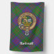 Clan MacDonald crest badge surrounded by a strap and buckle over tartan background. Custom text.