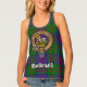 Clan MacDonald crest badge surrounded by a strap and buckle over tartan background. Custom text.