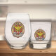 Clan MacDonald of Keppoch crest badge surrounded by a strap and buckle over tartan background. Custom text on both sides.