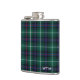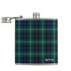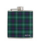 Monogrammed flask with the tartan for Clan MacDonald of the Isles and its septs, including Alastair and Hawthorne. Navy blue and forest green Scottish plaid pattern from 1842, with bright red, white and black accents.