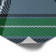 Clan MacDowall crest badge surrounded by a strap and buckle over tartan background. Custom text.