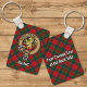 Clan MacDuff crest badge surrounded by a strap and buckle over tartan background. Custom text on both sides.