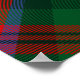 Clan MacDuff crest badge surrounded by a strap and buckle over tartan background. Custom text.