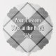 Clan MacFarlane crest badge surrounded by a strap and buckle over black and white tartan background. Custom text on both sides.