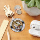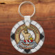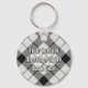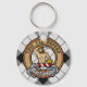 Clan MacFarlane Crest over Black and White Tartan Keychain