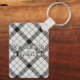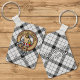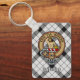 Clan MacFarlane Crest over Black and White Tartan Keychain