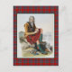 Postcard with a digitally cleaned and enhanced vintage watercolor illustration by Scottish artist Robert Ronald McIan, dated to 1845. Framed with the Clan MacFarlane tartan, a traditional plaid pattern in bright red, royal blue, and green. Digital tartan image created by Susan Wallace of Plaidwerx using thread count provided by The Scottish Register of Tartans.