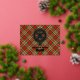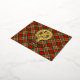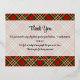Clan MacGill crest badge surrounded by a strap and buckle over tartan background. Foil printed thank you card. Custom text.