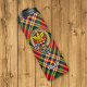 Clan MacGill crest badge surrounded by a strap and buckle over tartan background. Custom text.