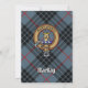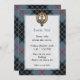 Clan MacKay crest badge surrounded by a strap and buckle over blue tartan background. Custom text on both sides.